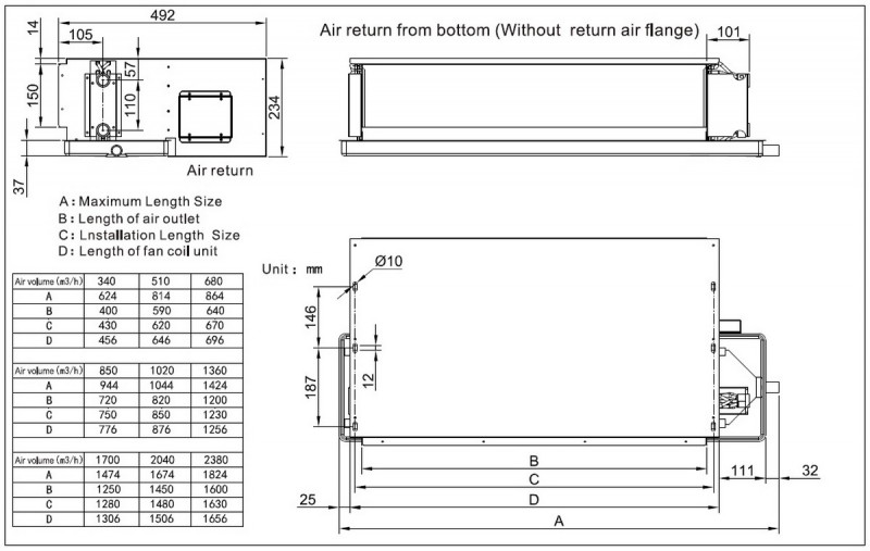 Ventiloconvector plafon necarcasat WARMMAN MFP-WA-B 85 - 5 kW