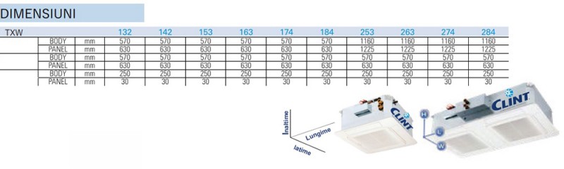 Ventiloconvector tip caseta 2 tevi Clint TXW/EC - dimensiuni